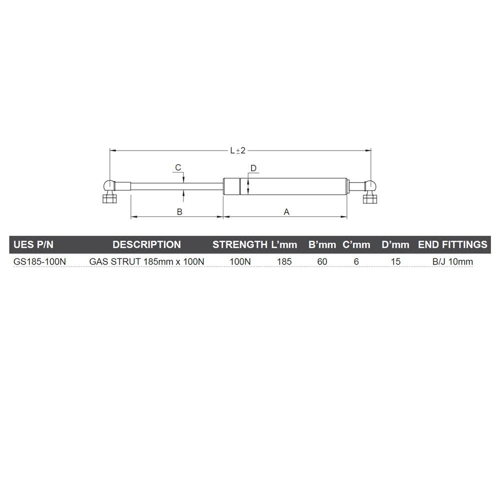 Gas Strut 185mm x 100N