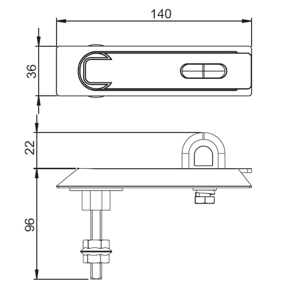 • Dimensions: 140mm L x 36mm W x 96mm H - Padlocking loop is an additonal 22mm in height