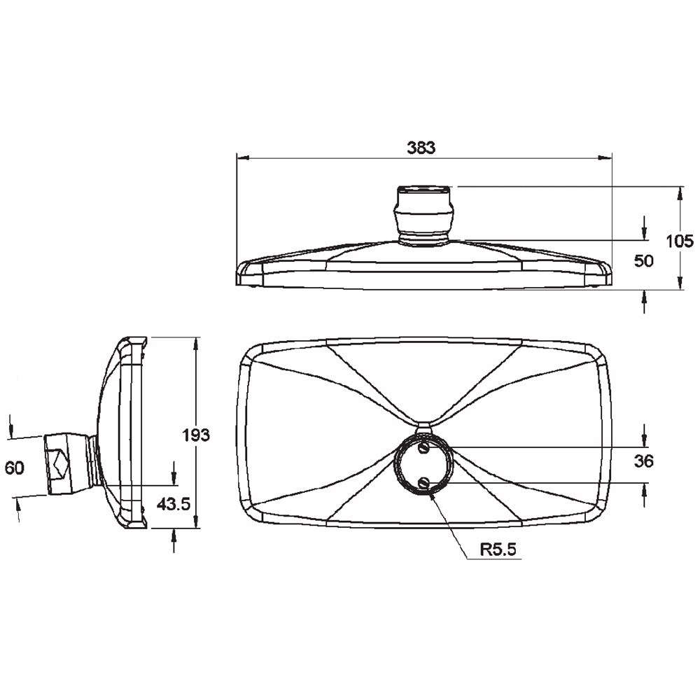 • Vehicle mirror head. Black. Manual operation. Flat glass. Suits 16mm x 28mm arms.