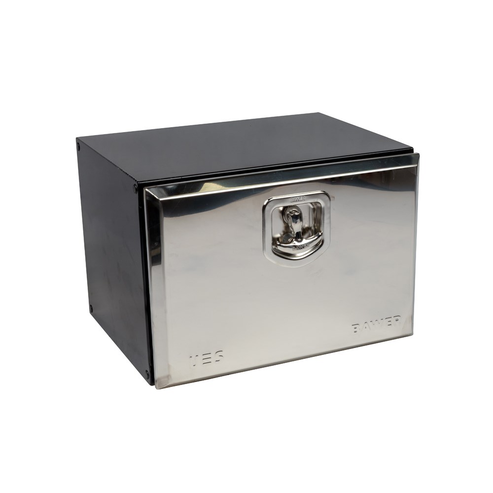 Bawer Toolbox - Black Powder Coated W/ Stainless Lid - 500L x 350H x 400D