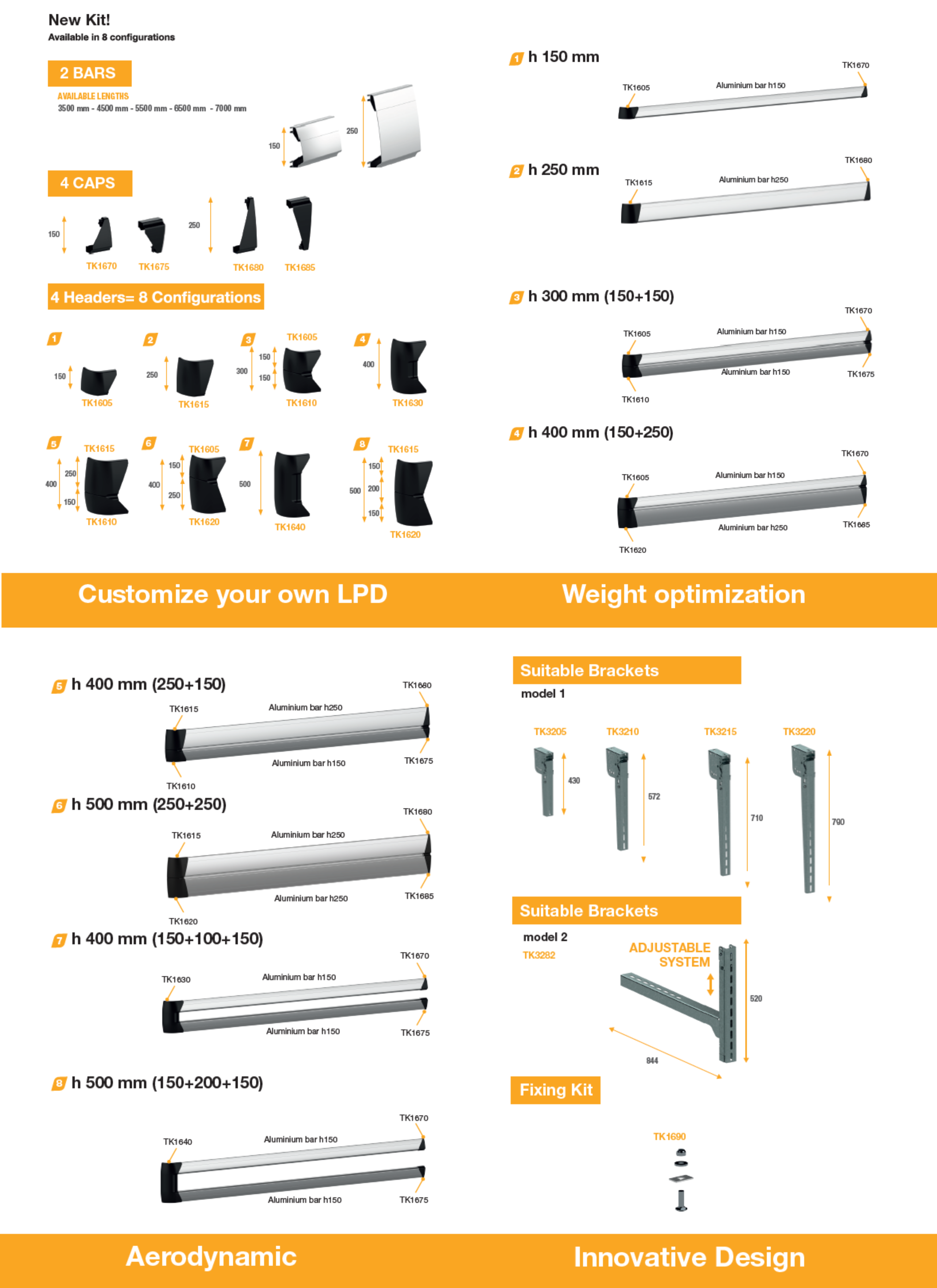 A complete system, with lengths from 3.5m to 7m, a range of fixing brackets, end caps and headers for faster installs and reduced downtime.