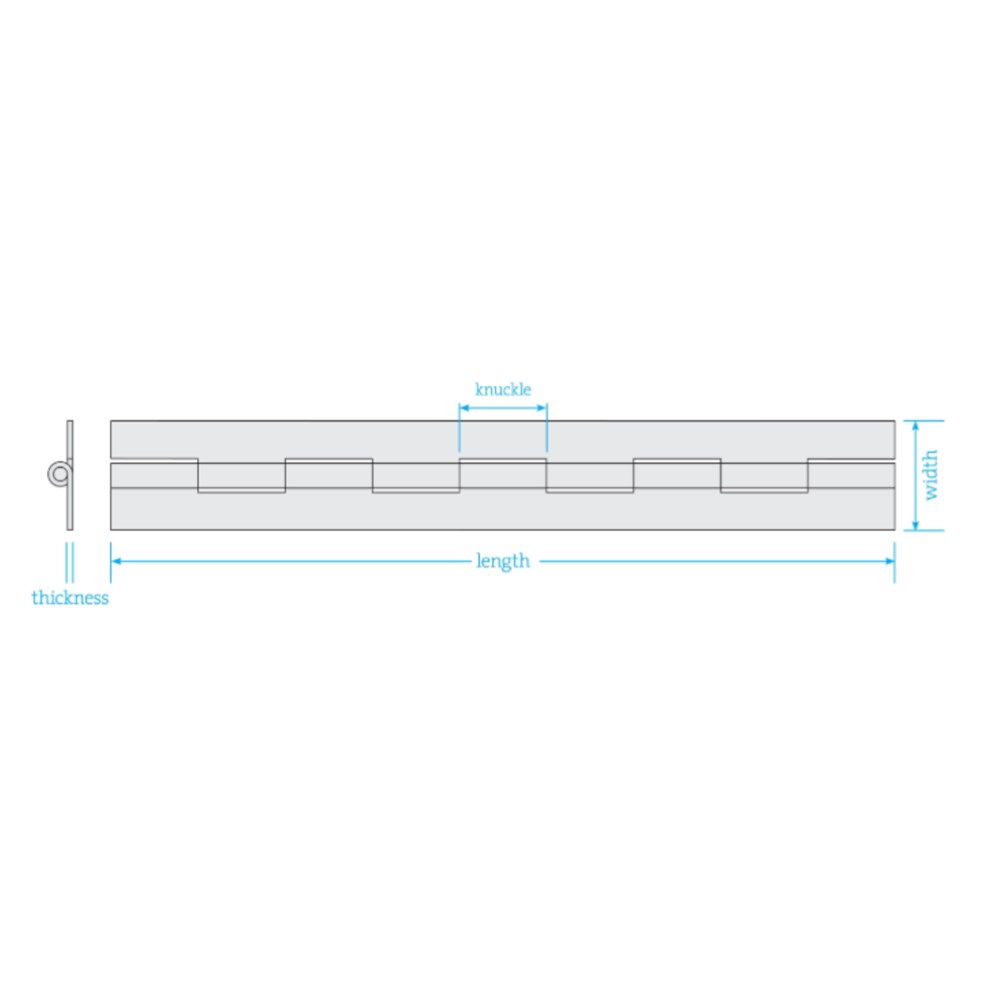 • Continuous hinge (sometimes referred to as piano hinge) is a hinge that can be cut to required lengths.