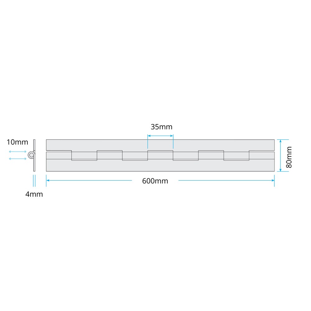 Continuous Hinge 80mm x 4.0mm x 600mm Long MS 10mm MS Pin