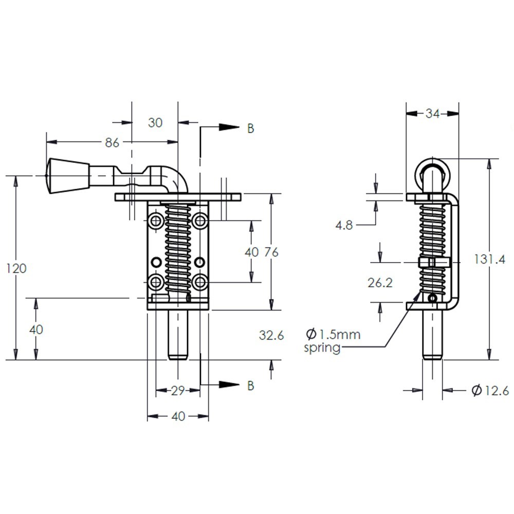 Quick Release Spring Bolt Fastener Long Arm – Pin Retaining - 128 x 34 x 132mm – Zinc Plated