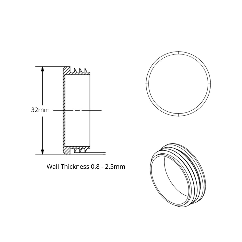 Insert Round Plastic 32mm (0.8 -2.5mm Wall)