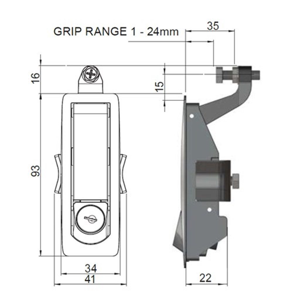 Lift and Turn Compression Latch - Grip Range 1 - 24mm - Non Locking Flush