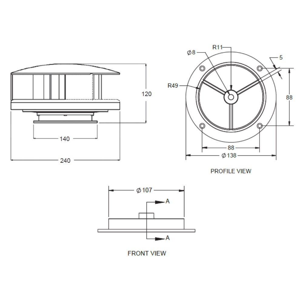 • Vent Diameter: 240 mm (outer), 140 mm (base)